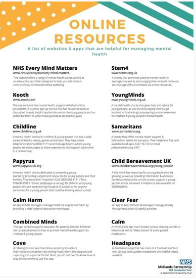 There are lots of local organisations that are there to support you whether your child has a new diagnosis or you just want to reach out for advice and support. Please see the information attached or speak to Mrs Curtis about refferals or other ways of supporting you and your child.